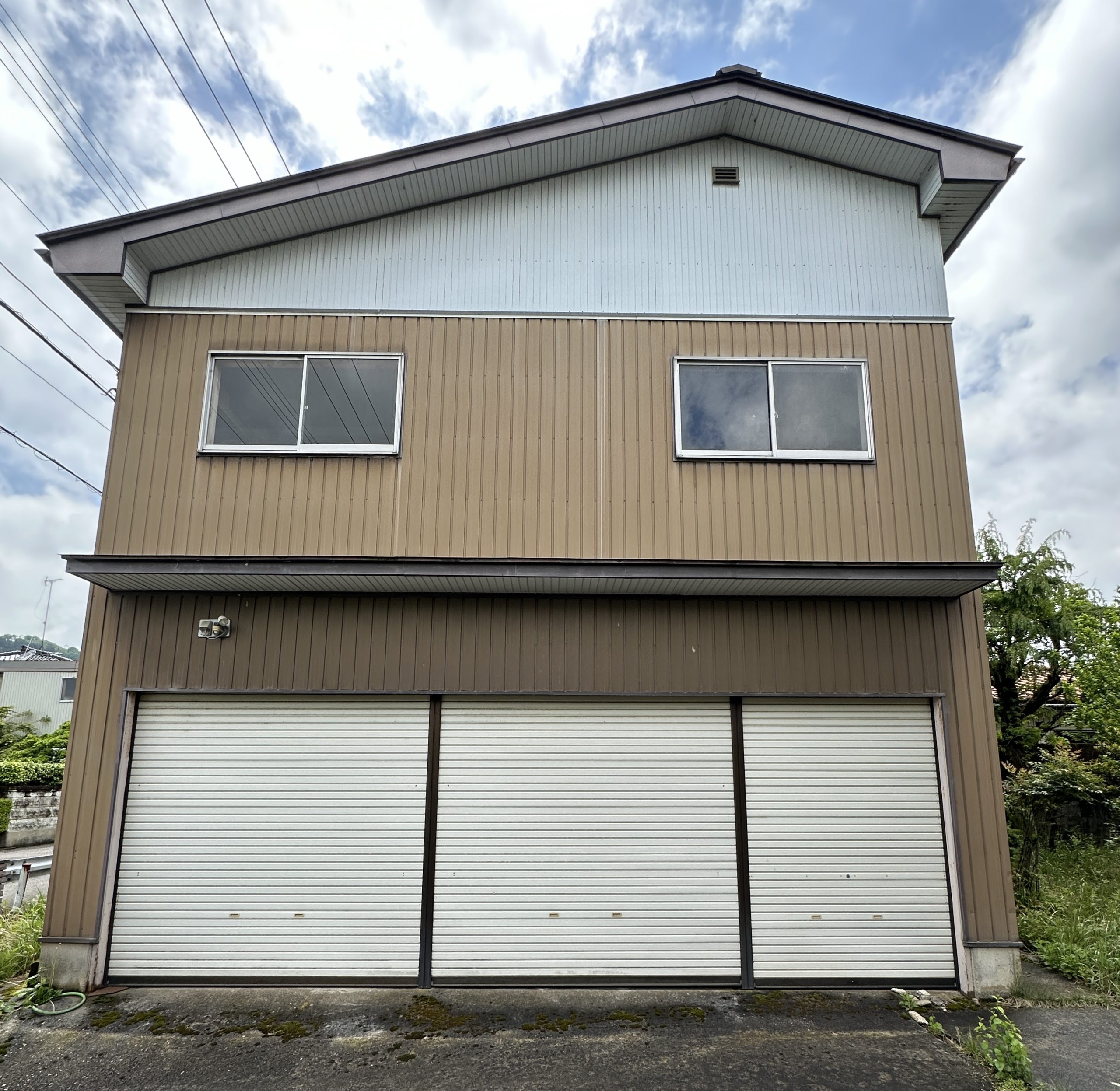 車庫は2階建てで、1階に車が2台駐車可能で、2階は物置スペースとして利用できます。敷地前の道路には融雪がありますので、冬の降雪も安心です。