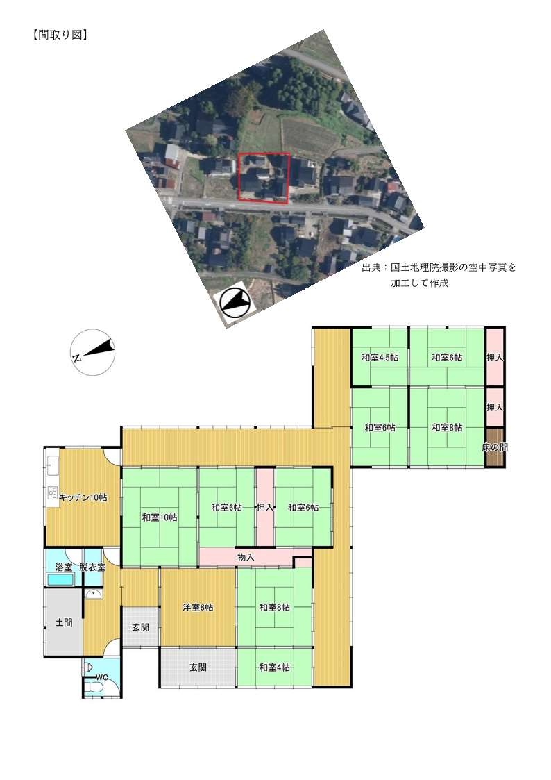 県道沿いの閑静な住宅街に建つ築115年の一軒家です。部屋数は、1階に10部屋の10LDKです。