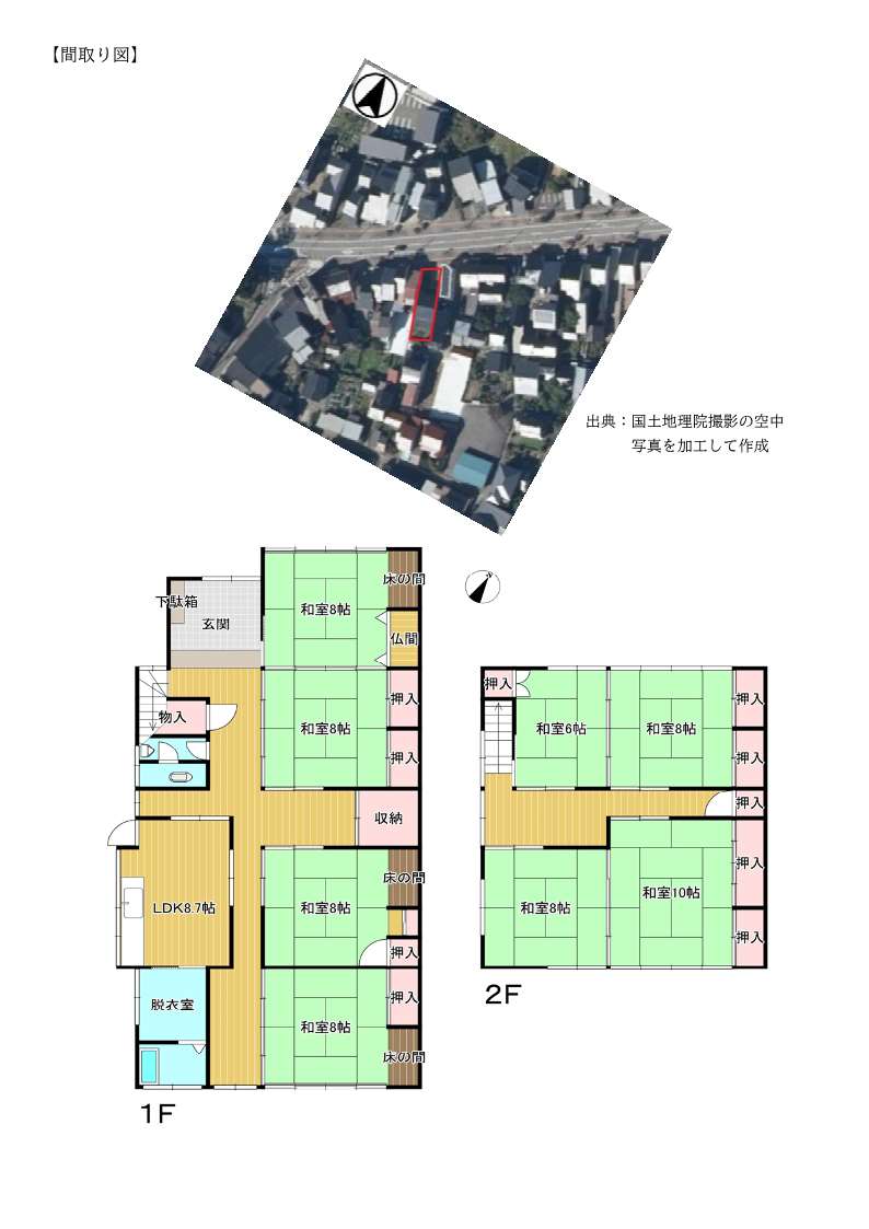便利な市街地エリアにある築44年の一軒家です。部屋数は、1階に4部屋、2階に4部屋の8LDKです。