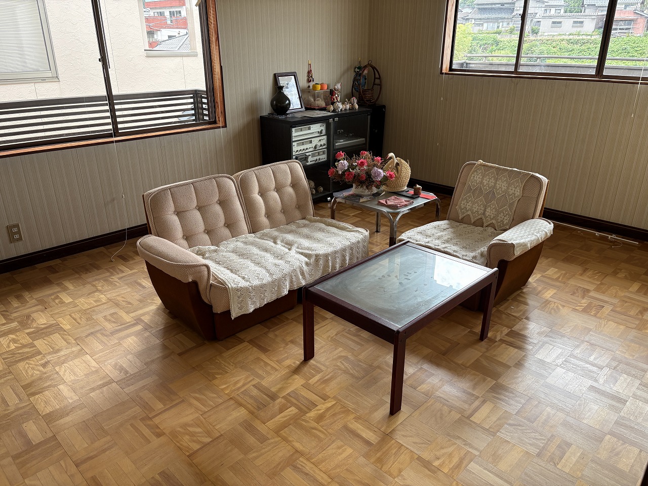 のどかな住宅街にある築40年の一軒家です。部屋数は、1階に4部屋、2階に3部屋の7DKです。