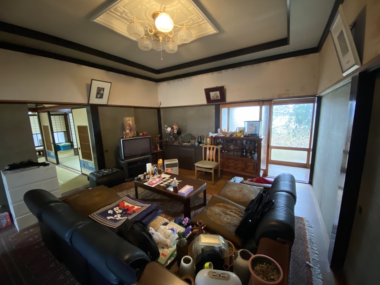 のどかな散居村エリアにある築78年の一軒家です。部屋数は、1階に10部屋、2階に2部屋の12DKです。1階にレトロな雰囲気の洋間があります。